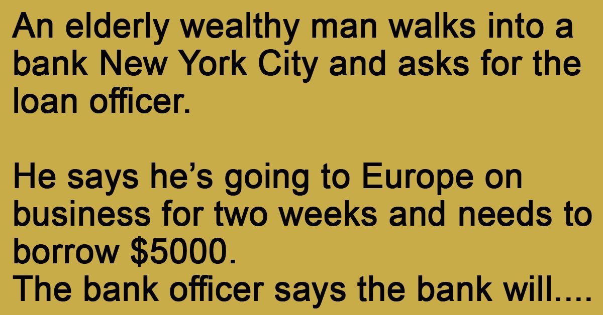 “Sir, I must tell you, we’re all a little puzzled. While you were away, we checked you out and discovered that you’re a multimillionaire. Why would you bother to borrow $5,000?”