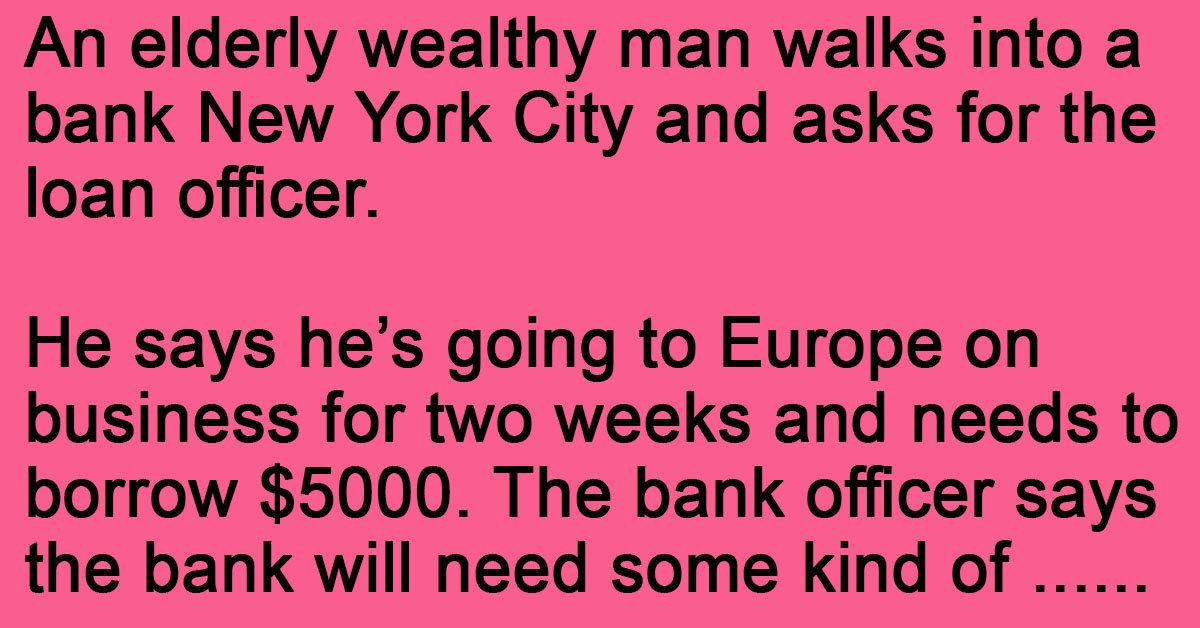 An elderly wealthy man walks into a bank New York City and asks for the loan officer.