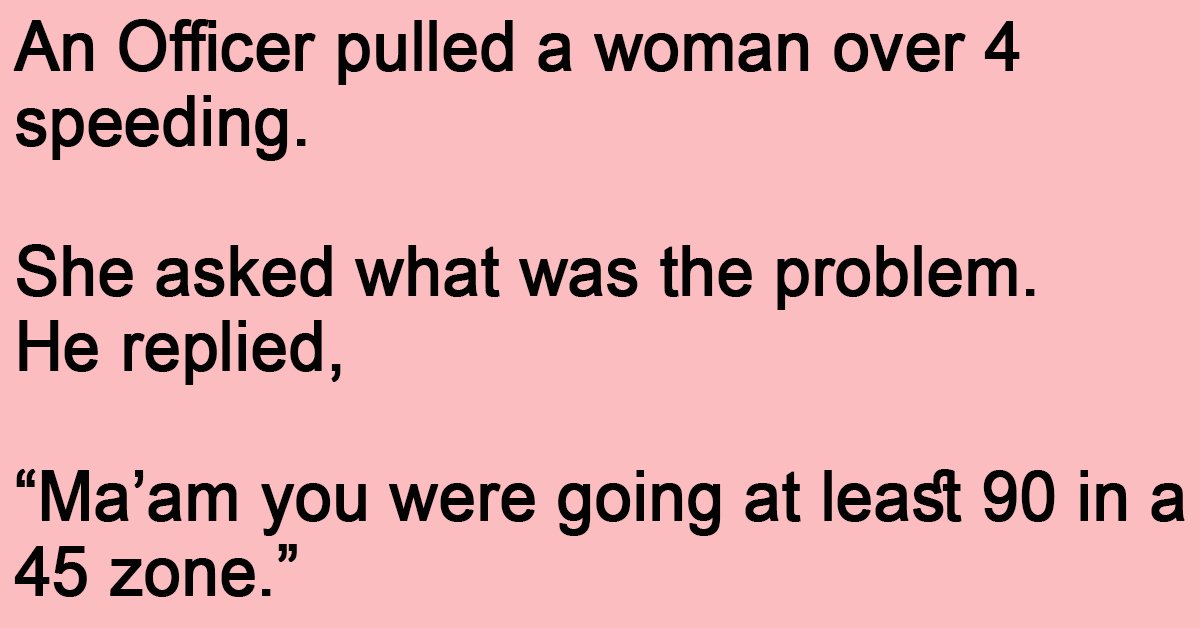“Ma’am you were going at least 90 in a 45 zone.”
