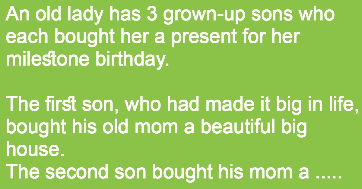 An old lady has 3 grown-up sons who each bought her a present for her milestone birthday.