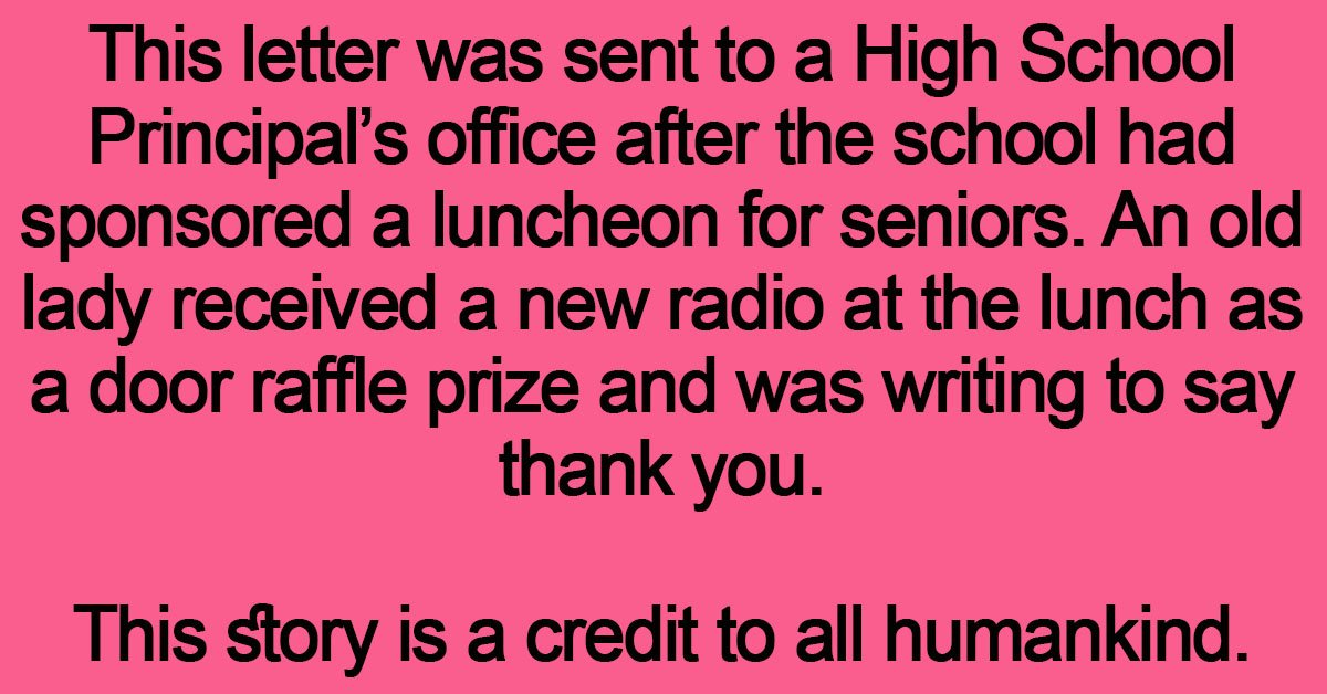 An old lady received a new radio at the lunch as a door raffle prize and was writing to say thank you.