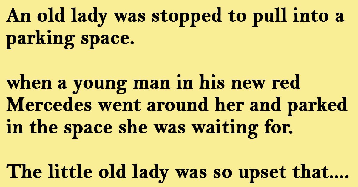 when a young man in his new red Mercedes went around her and parked in the space she was waiting for.