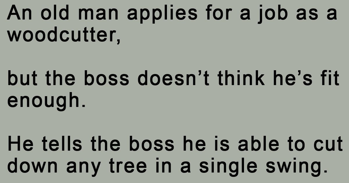 An old man applies for a job as a woodcutter,