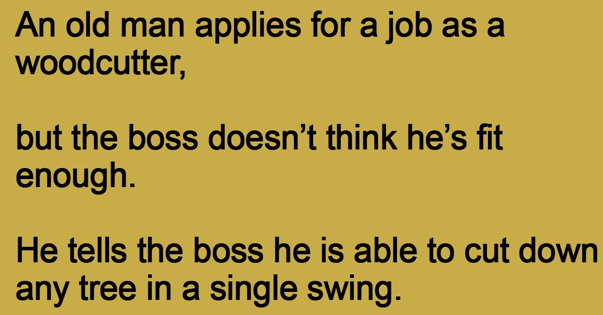 An old man applies for a job as a woodcutter,