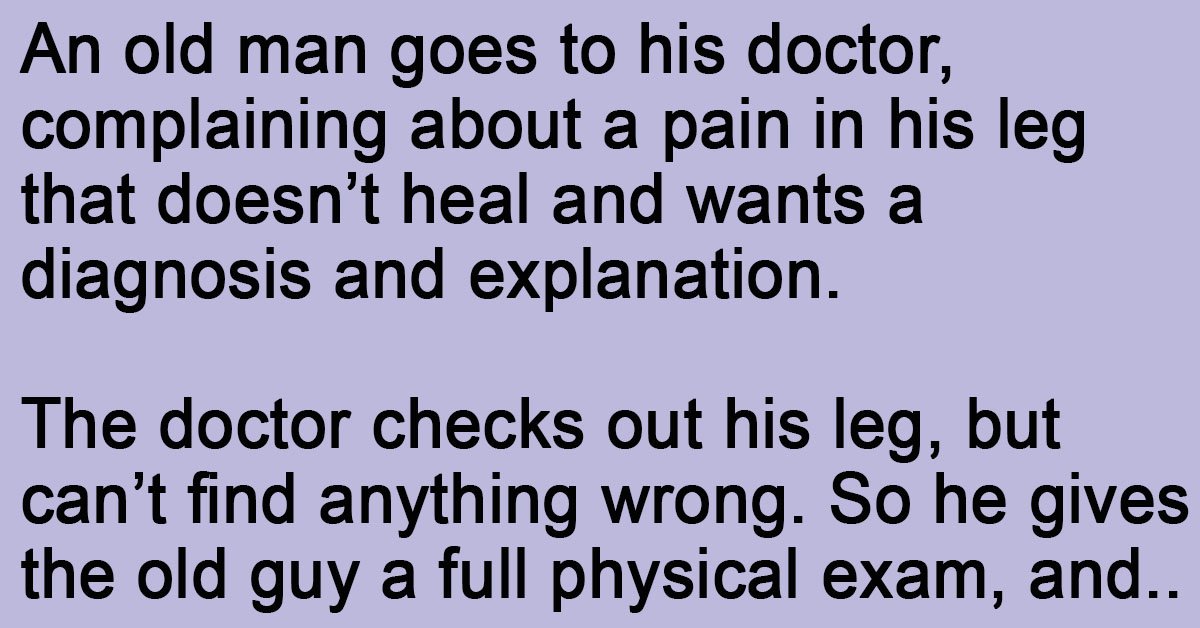 The doctor checks out his leg, but can’t find anything wrong. So he gives the old guy a full physical exam, and still can’t come up with any possible explanation for the pain.