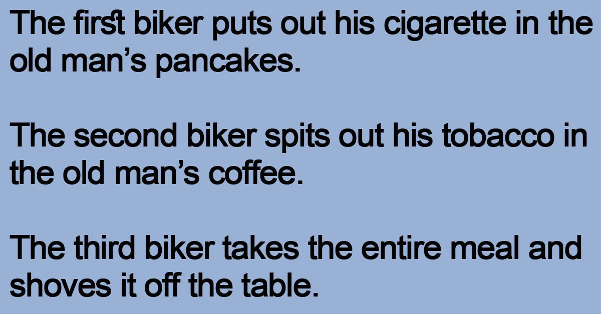 An old man is having breakfast at a diner when three bikers walked in.