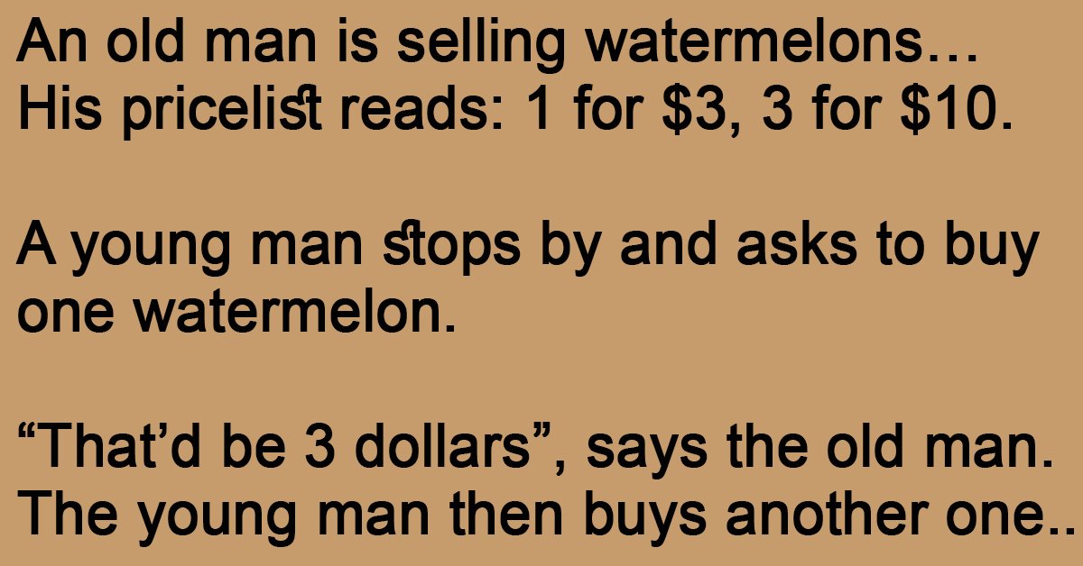“Hey old man, do you realize I just bought three watermelons for only $9? Maybe business is not your thing.”
