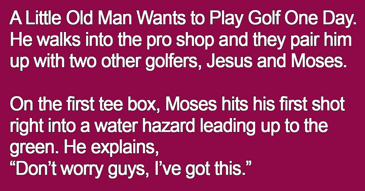 He walks into the pro shop and they pair him up with two other golfers, Jesus and Moses.
