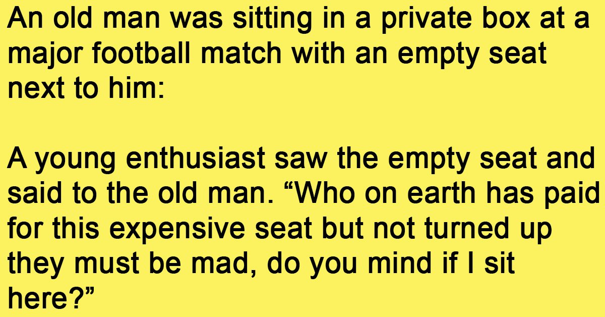 An old man was sitting in a private box at a major football match with an empty seat next to him: