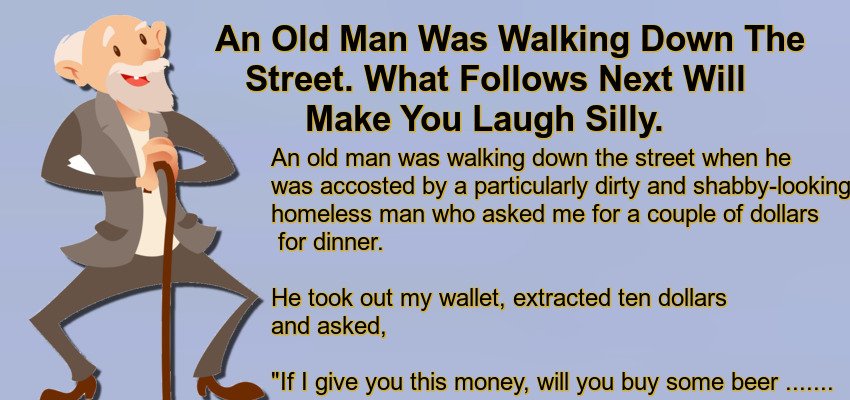 An old man was walking down the street when he was accosted by a particularly dirty and shabby-looking homeless man who asked me for a couple of dollars for dinner.
