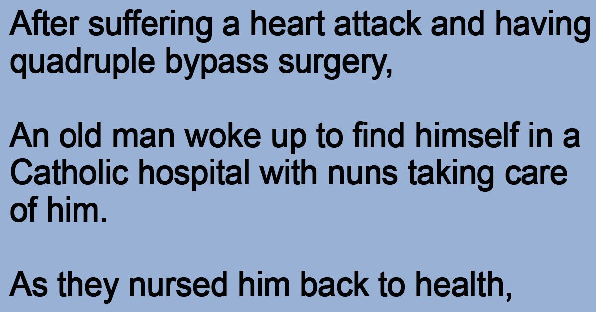 An old man woke up to find himself in a Catholic hospital with nuns taking care of him.