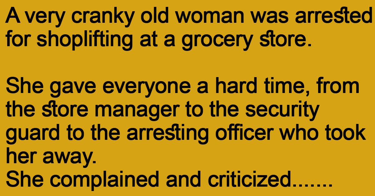 A very cranky old woman was arrested for shoplifting at a grocery store.