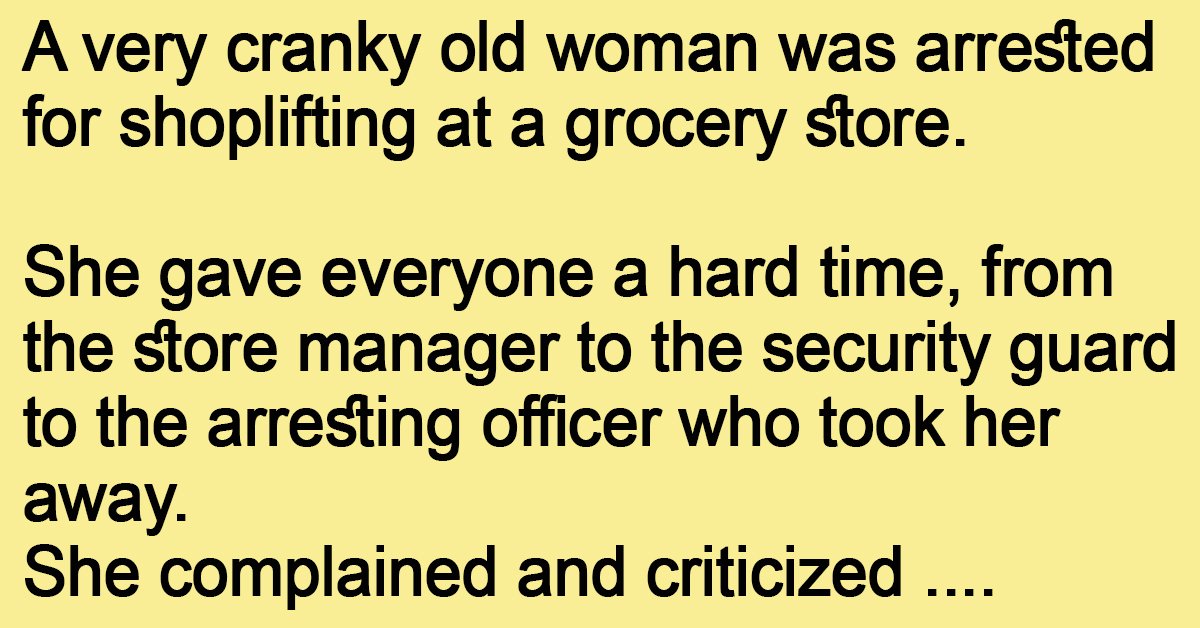A very cranky old woman was arrested for shoplifting at a grocery store.