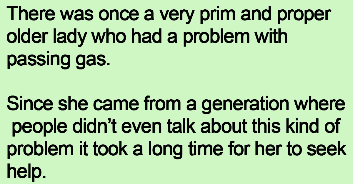 There was once a very prim and proper older lady who had a problem with passing gas.