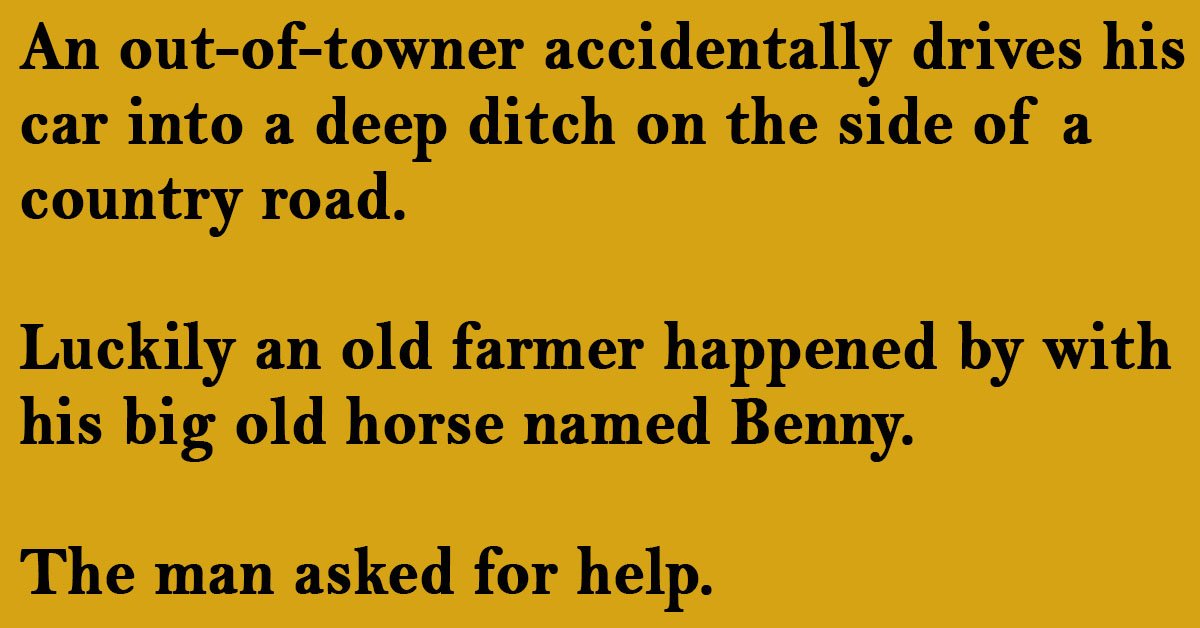 Luckily an old farmer happened by with his big old horse named Benny.