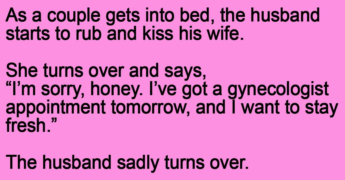 “I’m sorry, honey. I’ve got a gynecologist appointment tomorrow, and I want to stay fresh.”