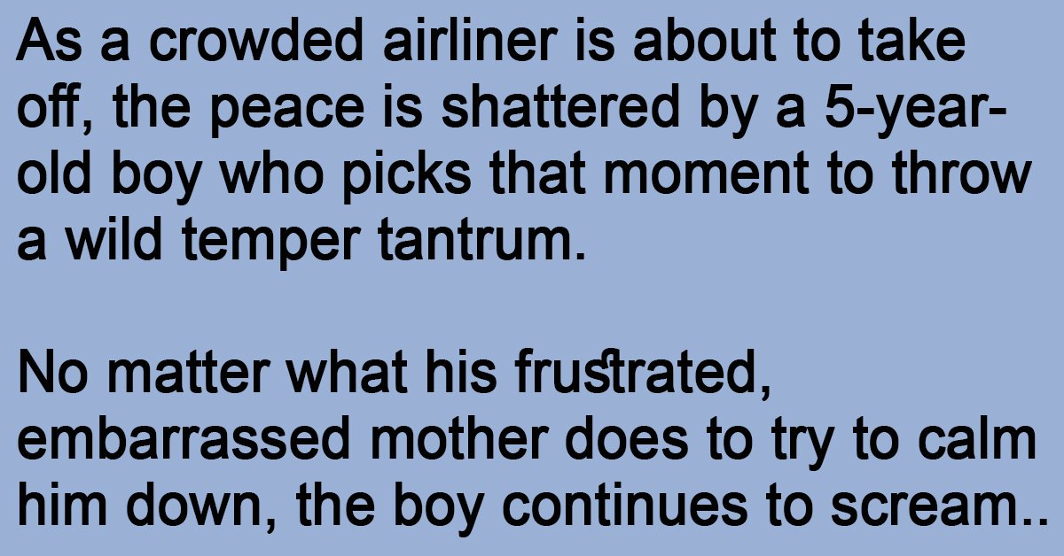 As a crowded airliner is about to take off, the peace is shattered by a 5-year-old boy who picks that moment to throw a wild temper tantrum. No matter … …