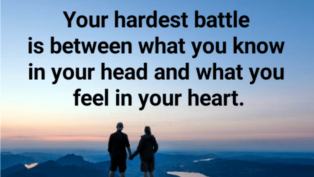 Your hardest battle is between what you know in your head and what you feel in your heart.