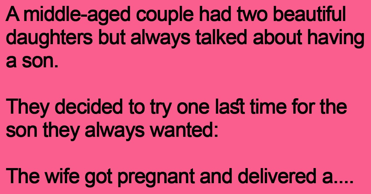 A middle-aged couple had two beautiful daughters but always talked about having a son. They decided to try one last time for the son they always wanted: The wife … …