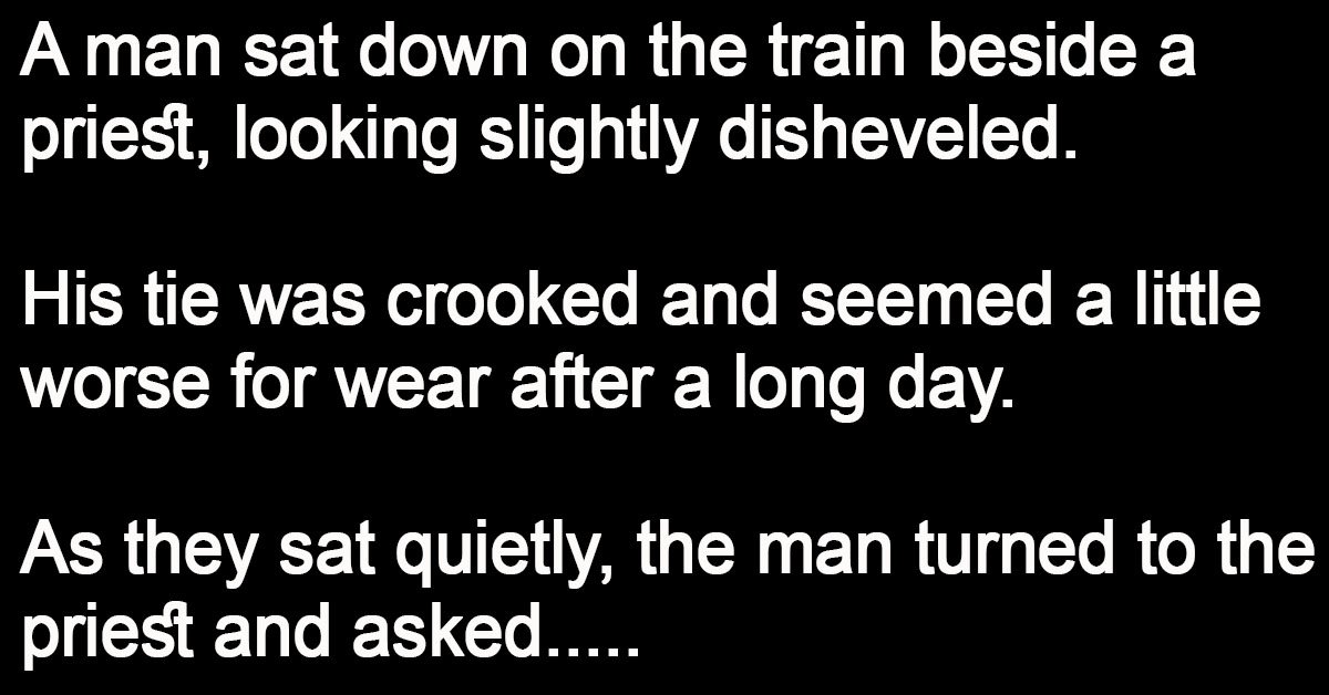 A man sat down on the train beside a priest, looking slightly disheveled. His tie was crooked and seemed a little worse for wear after a long day. As … …