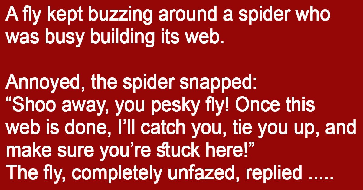 A fly kept buzzing around a spider who was busy building its web. Annoyed, the spider snapped: “Shoo away, you pesky fly! Once this web is done, I’ll catch … …