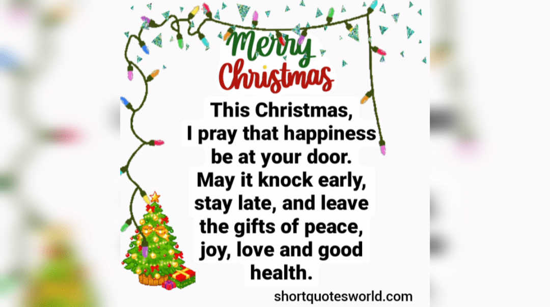 This Christmas, I pray that happiness be at your door. May it knock early, stay late, and leave the gifts of peace, joy, love and good health.