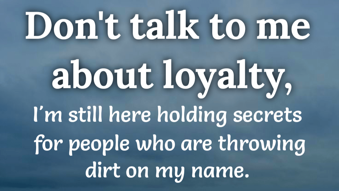 I held her secrets and she couldn’t do so to mine, that’s not loyalty.