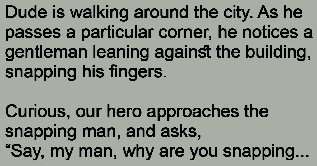 Dude is walking around the city. As he passes a particular corner, he notices a gentleman leaning against the building, snapping his fingers.