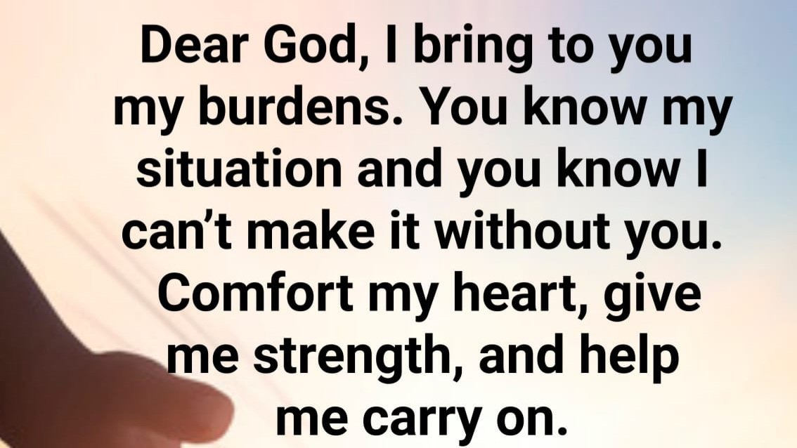 Dear God, I bring you my burdens. You know my situation and you know I can’t make it without you. Comfort my heart, give me strength, and help me carry on because I can’t do it without your help.