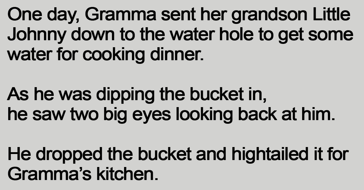 One day, Gramma sent her grandson Little Johnny down to the water hole to get some water for cooking dinner.