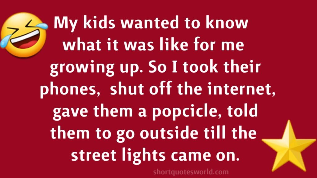 My kids wanted to know what it was like for me growing up. So I took their phones, shut off the internet, gave them a popcicle, told them to go outside till the street lights came on.