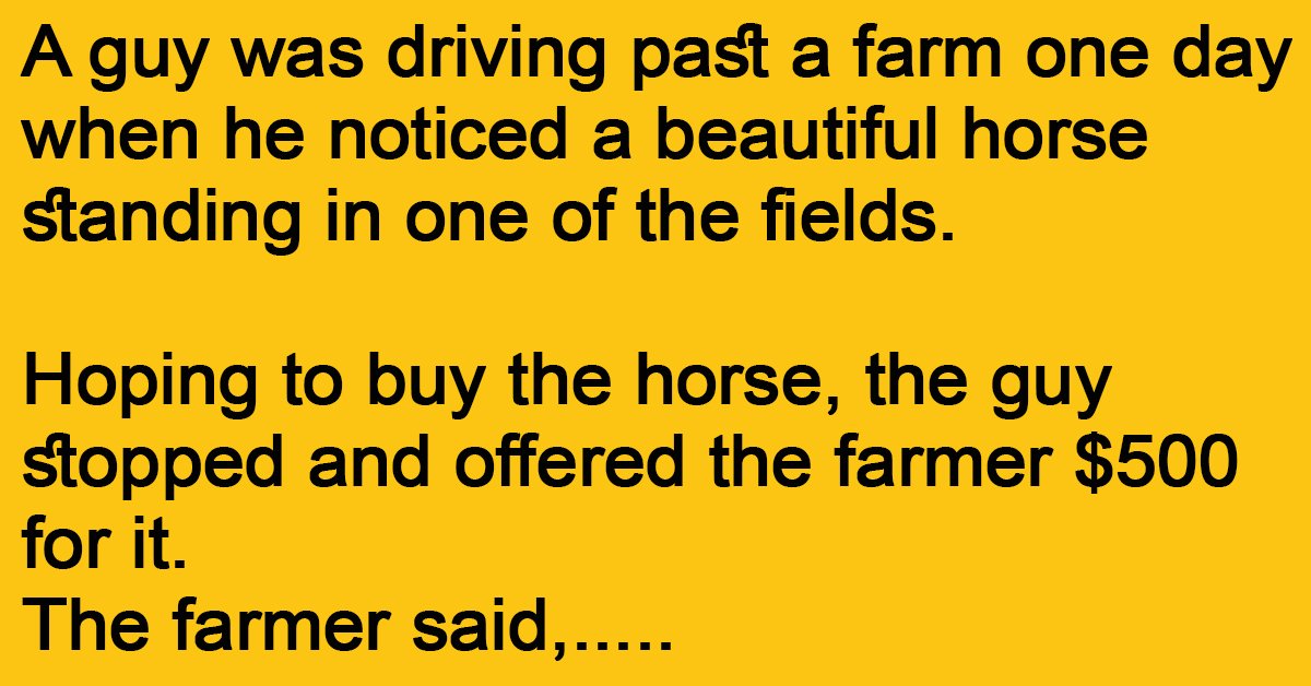 Hoping to buy the horse, the guy stopped and offered the farmer $500 for it.