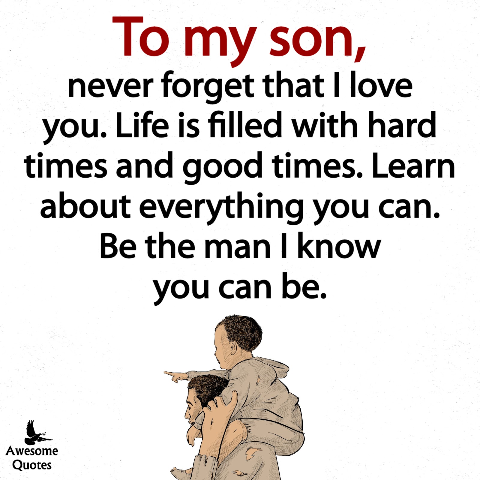 To my son, never forget that I love you. Life is filled with hard times and good times. Learn about everything you can. Be the man I know you can be.