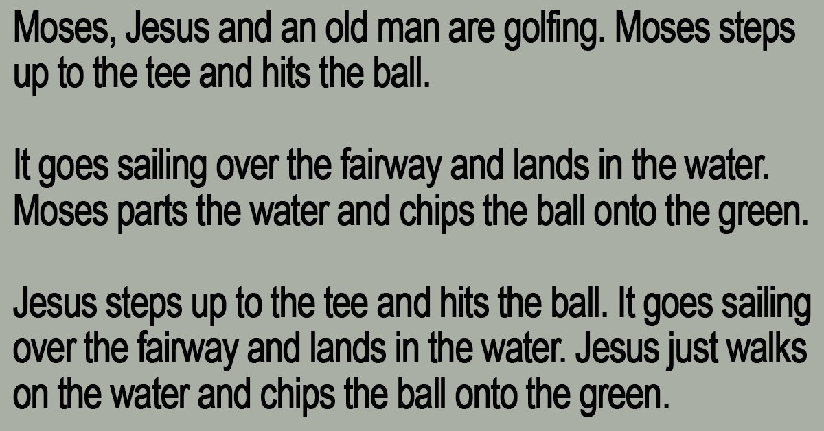 Moses, Jesus and an old man are golfing. Moses steps up to the tee and hits the ball.