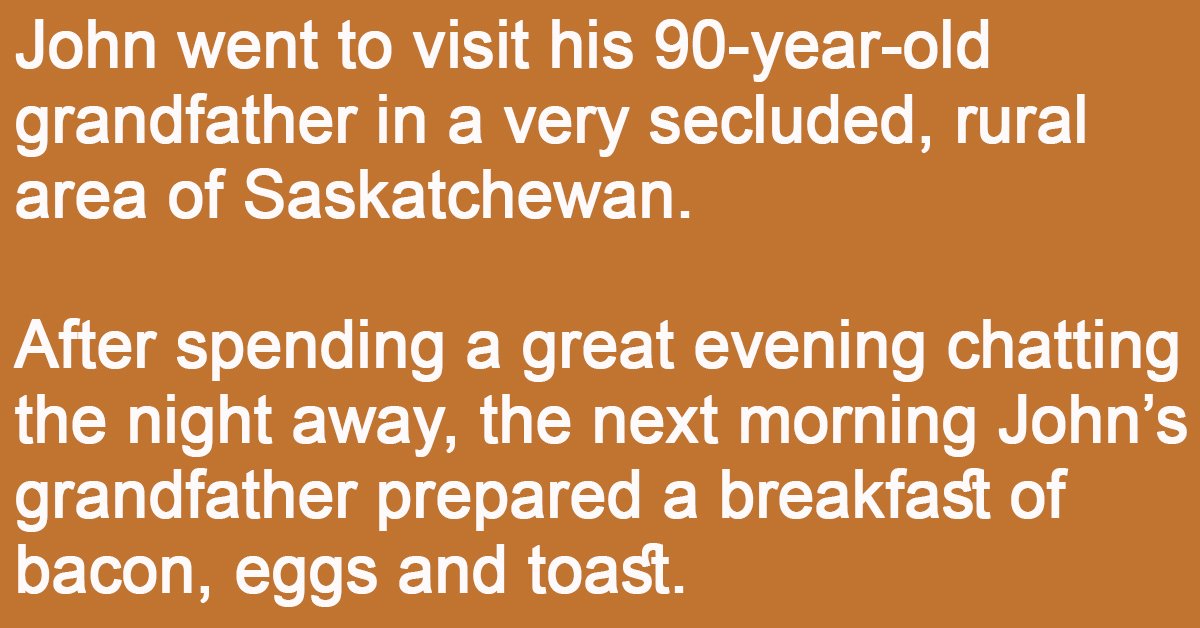 John went to visit his 90-year-old grandfather in a very secluded, rural area of Saskatchewan.