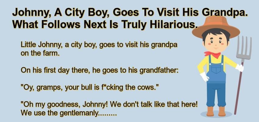 Little Johnny, a city boy, goes to visit his grandpa on the farm.