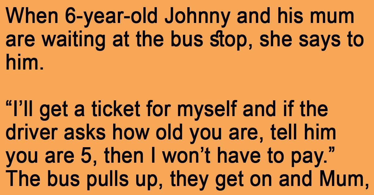 When 6-year-old Johnny and his mum are waiting at the bus stop, she says to him.