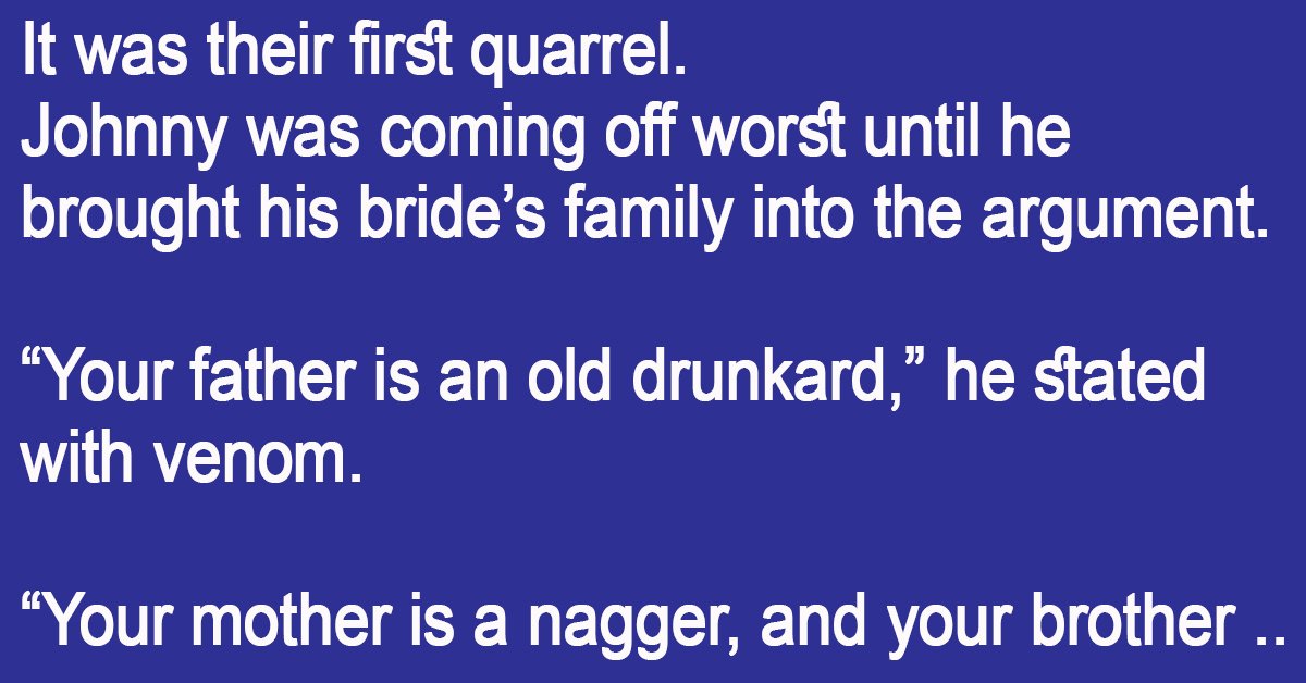 Johnny was coming off worst until he brought his bride’s family into the argument.