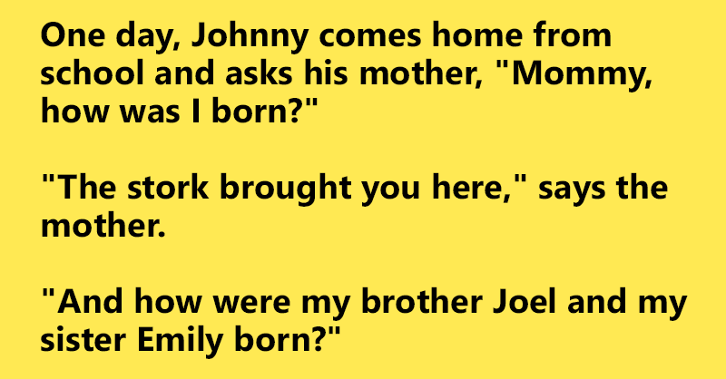 One day, Johnny comes home from school and asks his mother, “Mommy, how was I born?”