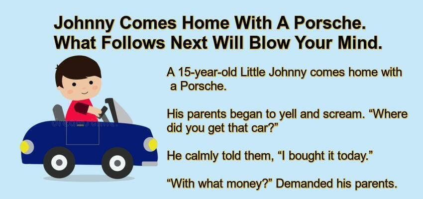 “With what money?” Demanded his parents. “We know how much a Porsche costs!”