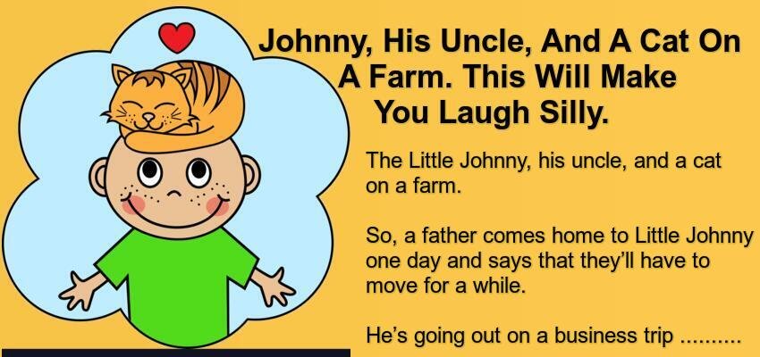 The Little Johnny, his uncle, and a cat on a farm.
