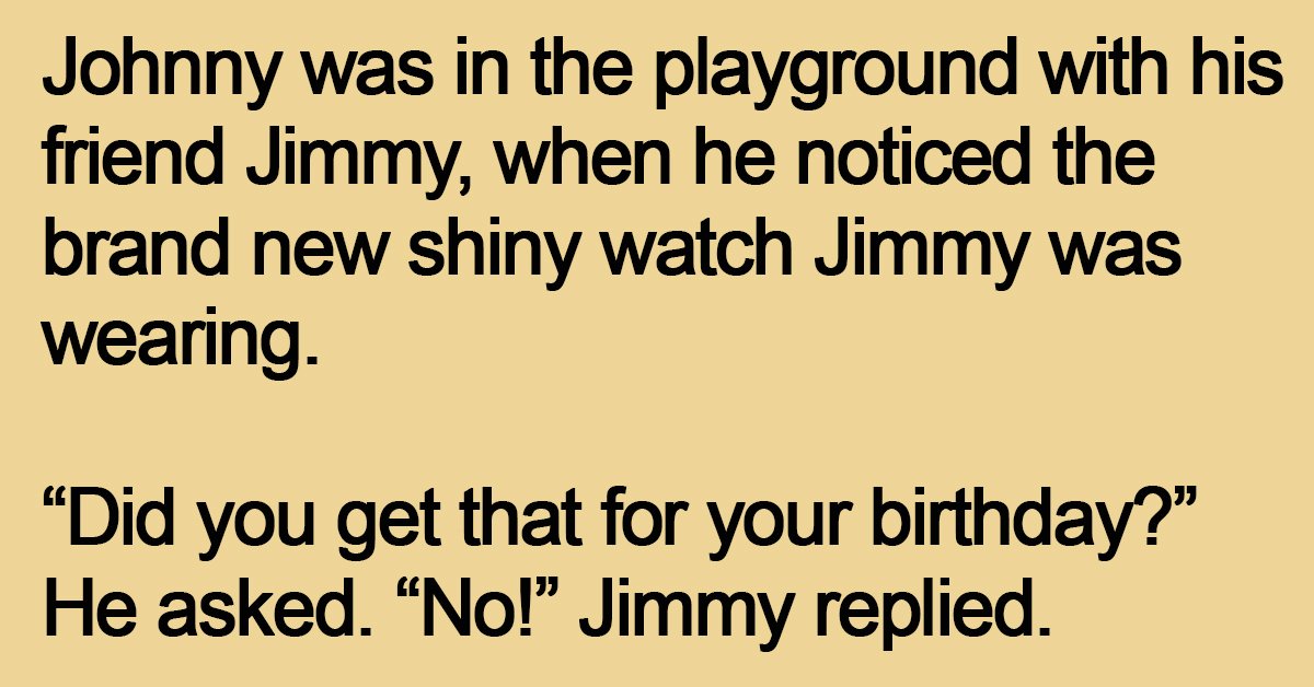 Johnny was in the playground with his friend Jimmy, when he noticed the brand new shiny watch Jimmy was wearing.