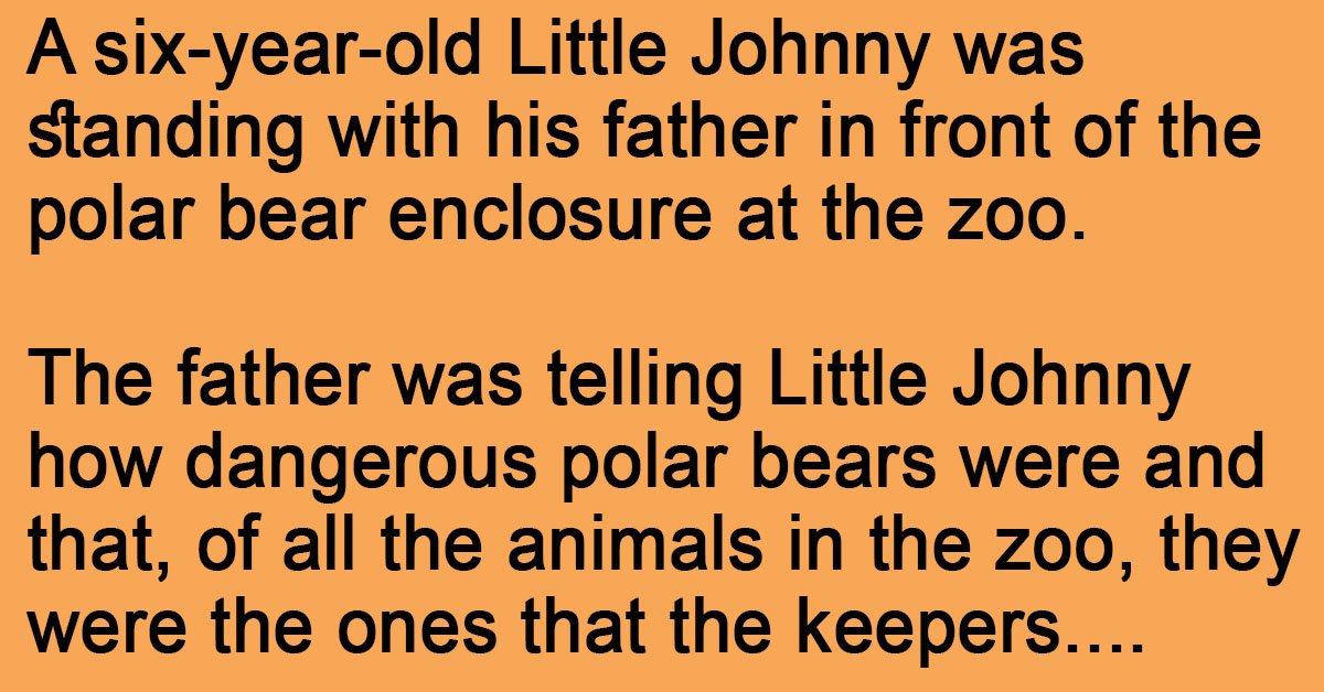 A six-year-old Little Johnny was standing with his father in front of the polar bear enclosure at the zoo.