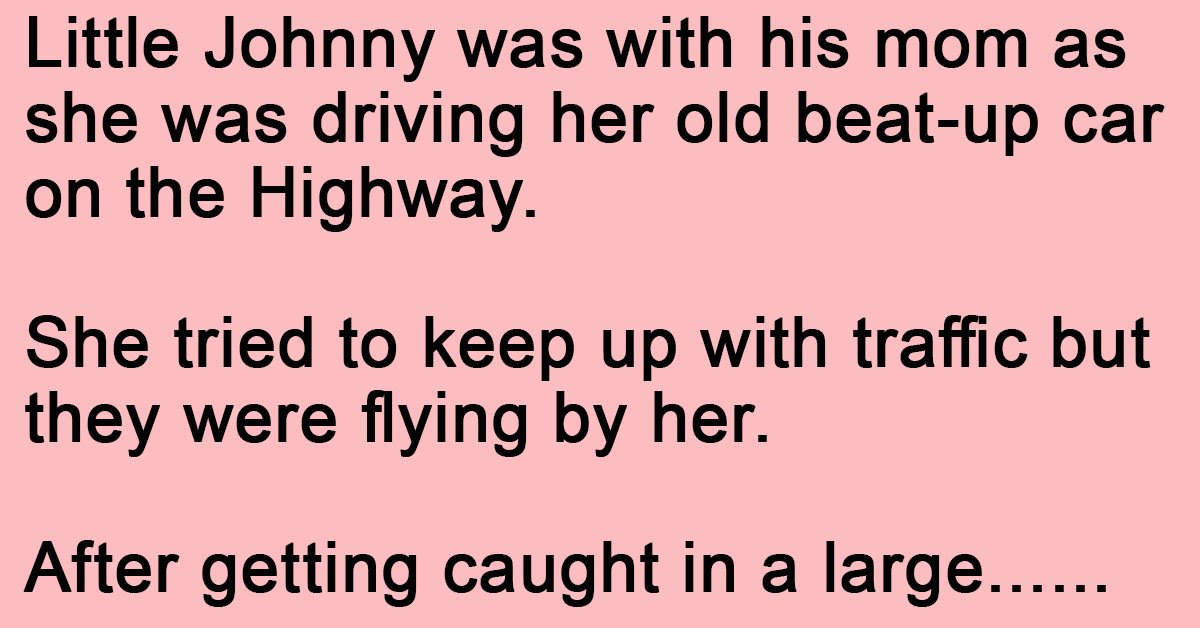 Little Johnny was with his mom as she was driving her old beat-up car on the Highway.