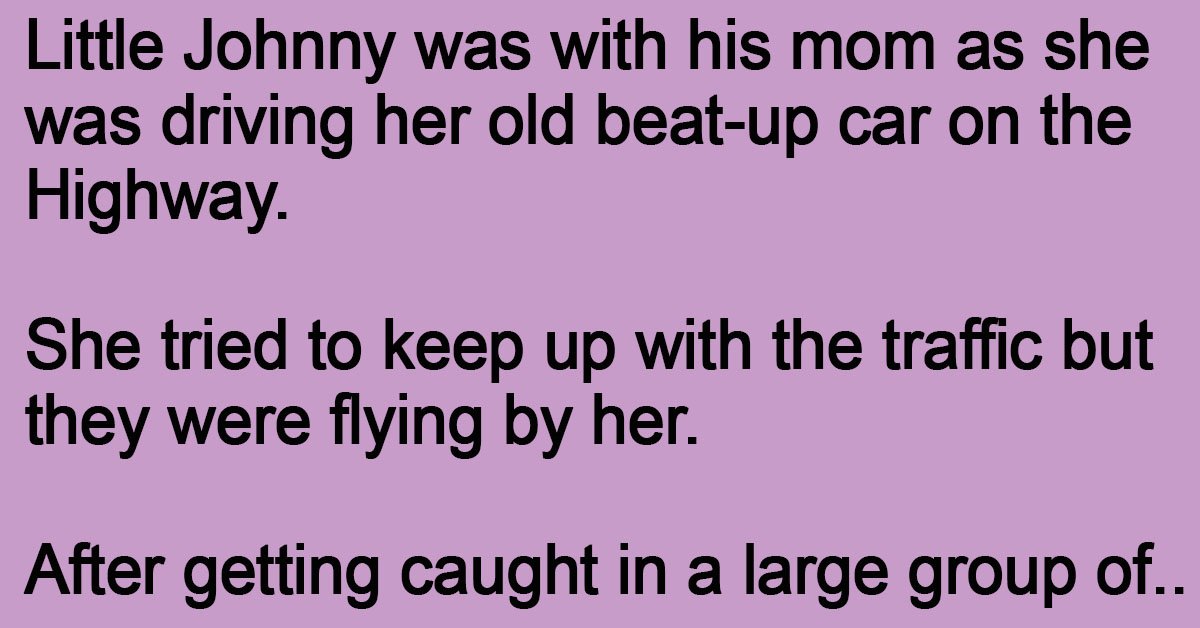 Little Johnny was with his mom as she was driving her old beat-up car on the Highway.