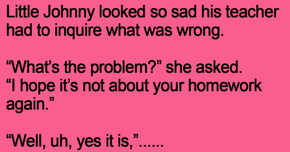 Little Johnny looked so sad his teacher had to inquire what was wrong.