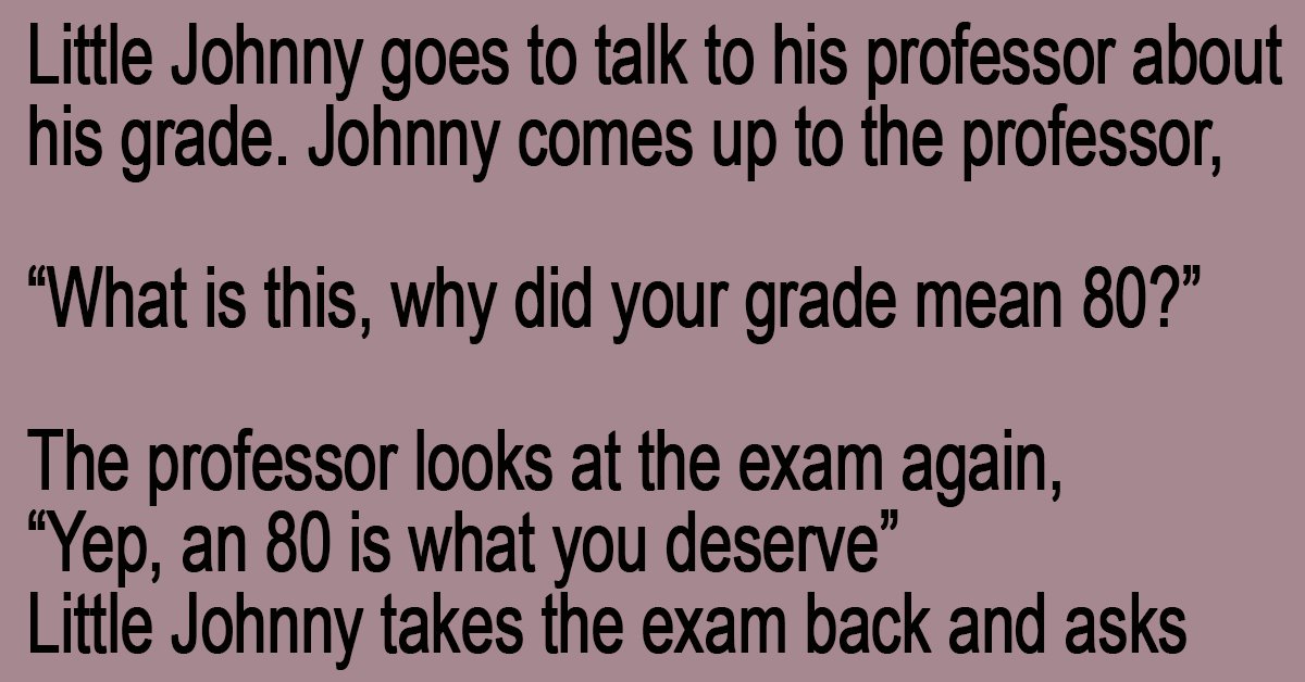 The shocked professor then takes the exam back and marks it 85.