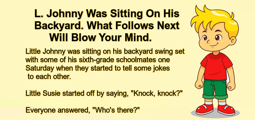 Little Johnny was sitting on his backyard swing set with some of his sixth-grade schoolmates one Saturday when they started to tell some jokes to each other.