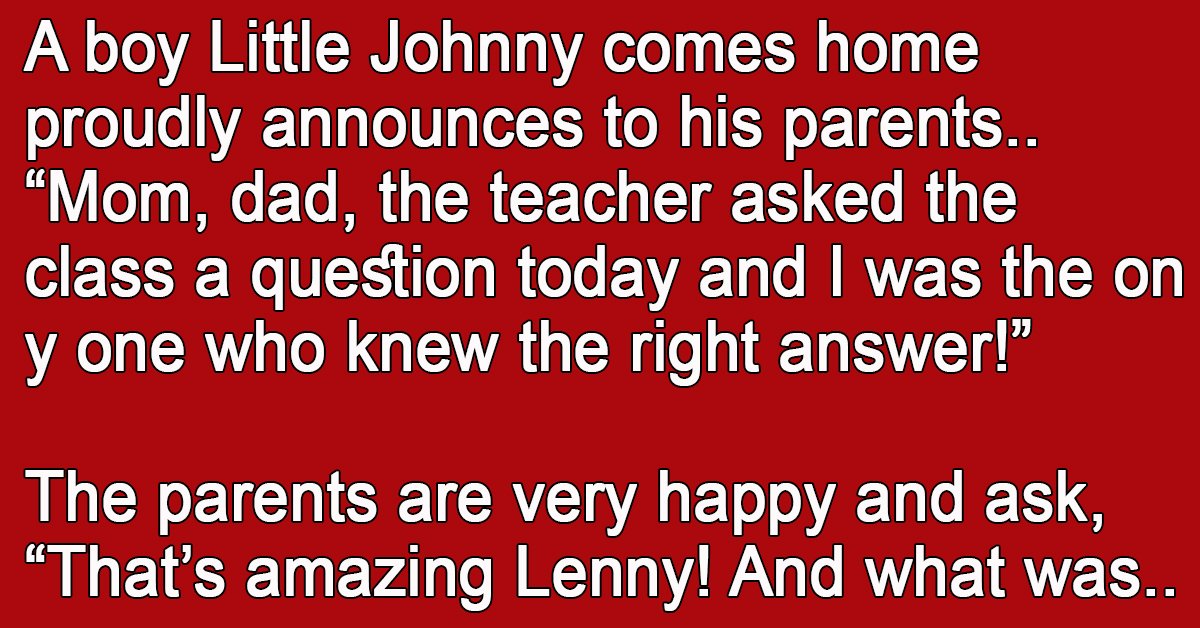 “Mom, dad, the teacher asked the class a question today and I was the only one who knew the right answer!”