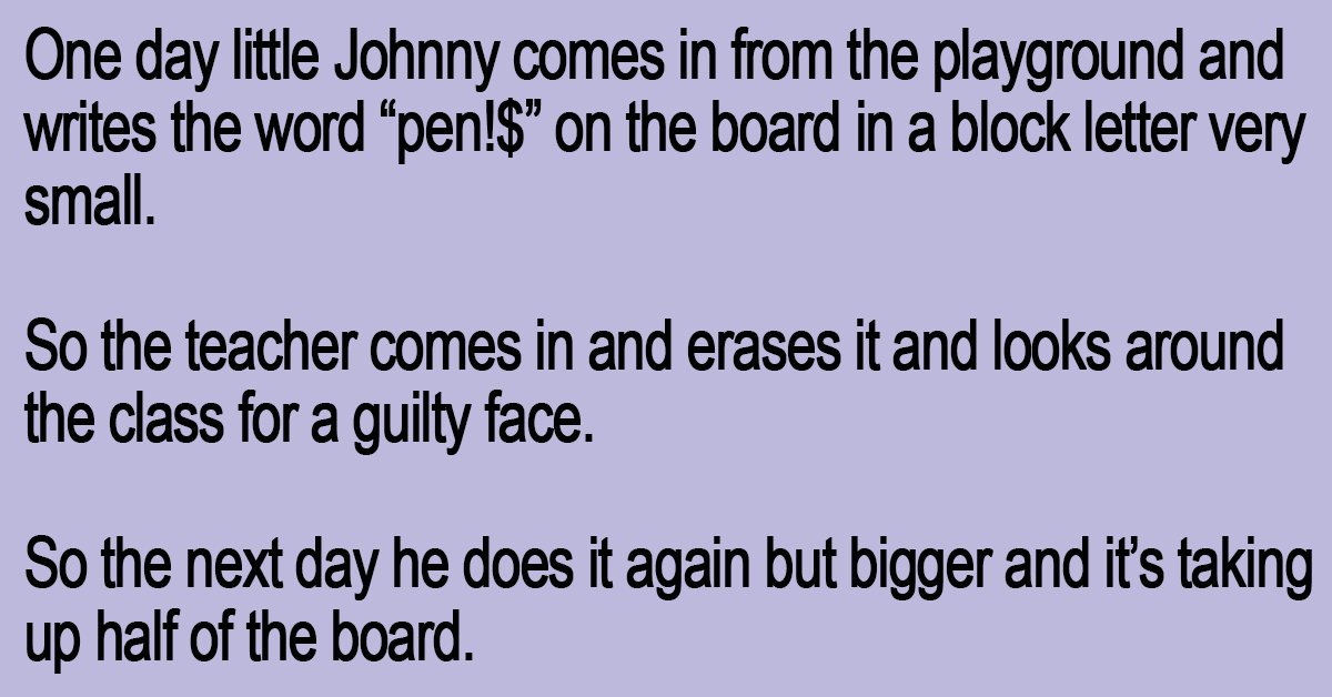 So finally the third day little Johnny write pen!$ on the board in big block letters covering the whole board.